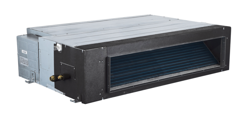 Классические сплит-системы канального типа средненапорные с возможностью нижнего и заднего забора воздуха и регулировки статического напора.
