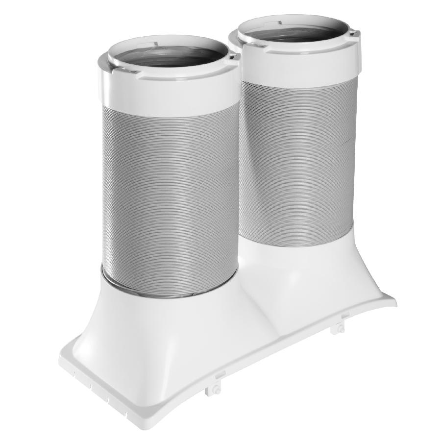 Комплект аксессуаров EACM-SPOT предназначен для организации точечного охлаждения работающего персонала или оборудования и представляет собой адаптер с двумя гибкими растягивающимися трубами, устанавливающийся вместо стандартных жалюзи кондиционера.