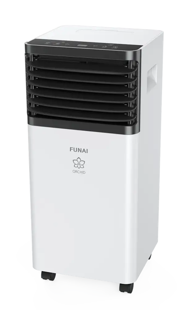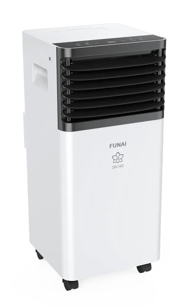 Мобильный кондиционер FUNAI, серия ORCHID. Компактные размеры в сочетании с мобильностью позволяют расположить прибор в любом помещении. Мобильные кондиционеры серии ORCHID имеют 3 режима работы: охлаждение, осушение, вентиляция, что позволяет легко настроить работу прибора под ваши потребности.