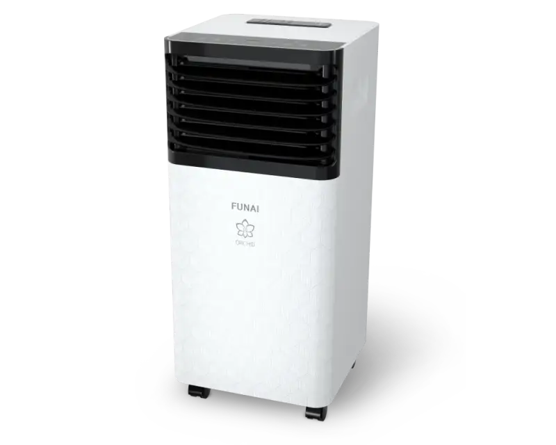 Мобильный кондиционер FUNAI, серия ORCHID. Компактные размеры в сочетании с мобильностью позволяют расположить прибор в любом помещении. Мобильные кондиционеры серии ORCHID имеют 3 режима работы: охлаждение, осушение, вентиляция, что позволяет легко настроить работу прибора под ваши потребности.
