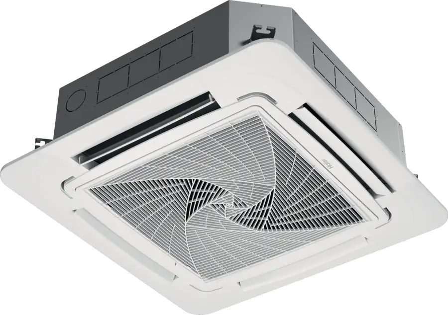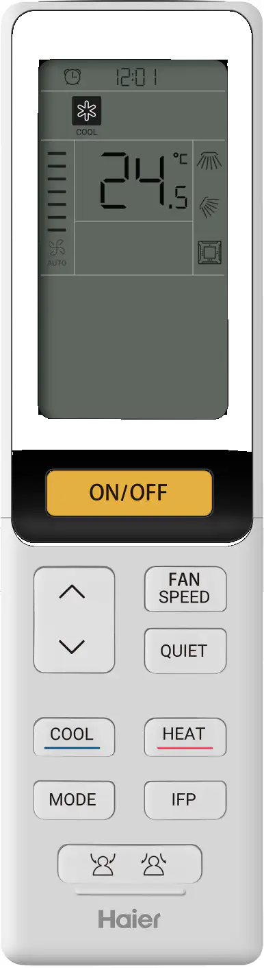 Скрытый дисплей размещён в центральной части декоративной панели. Он показывает рабочий режим, температурную уставку и текущую температуру воздуха в помещении, а также скорость вращения вентилятора