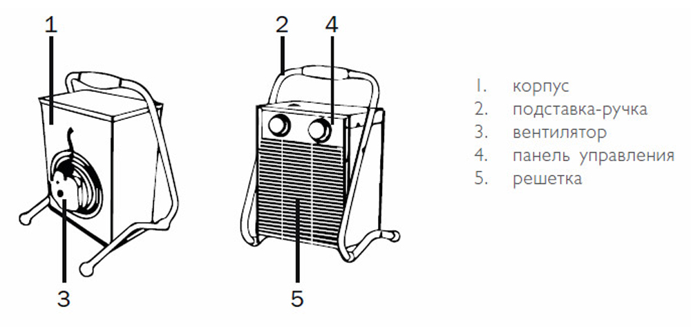 Условия эксплуатации: температура окружающего воздуха от -20 °С до +40 °С при относительной влажности воздуха не более 80%. Мощный электродвигатель гарантирует увеличенный ресурс работы (40 000 ч), в ТЭНы из нержавеющей стали - долгий срок службы прибора. Эргономичная прорезиненная ручка-поставка удобна для переноски и размещения прибора. Две ступени мощности и режим вентиляции позволяют выбрать необходимый режим работы пушки и оптимизировать энергозатраты.
