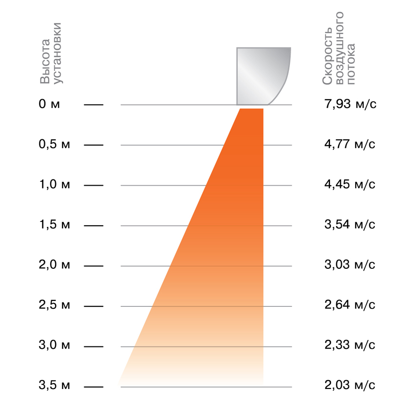 Завеса создает воздушный поток, который предотвращает проникновение в помещение с улицы холодного воздуха. В теплое время года завеса ZVV-T может работать без обогрева, предотвращая попадание внутрь помещения горячего воздуха с улицы, запахов, пыли, насекомых.