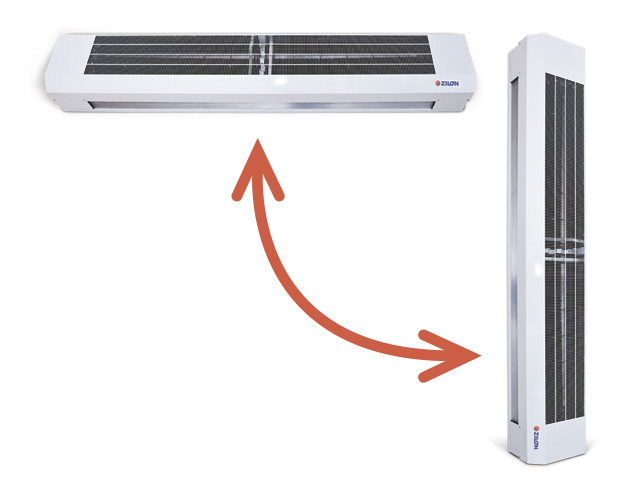 Тепловые завесы ZILON ZVV-T могут устанавливаться как в горизонтальном, так и в вертикальном положении.