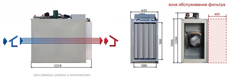 Приточная установка с водяным нагревателем предназначена для обслуживания помещений от 110 м2. Толщина корпуса 60 мм, смесительный узел смонтирован и настроен на внешней части корпуса, автоматика и пульт управления полностью настроены и подключены ко всем исполнительным механизмам установки.